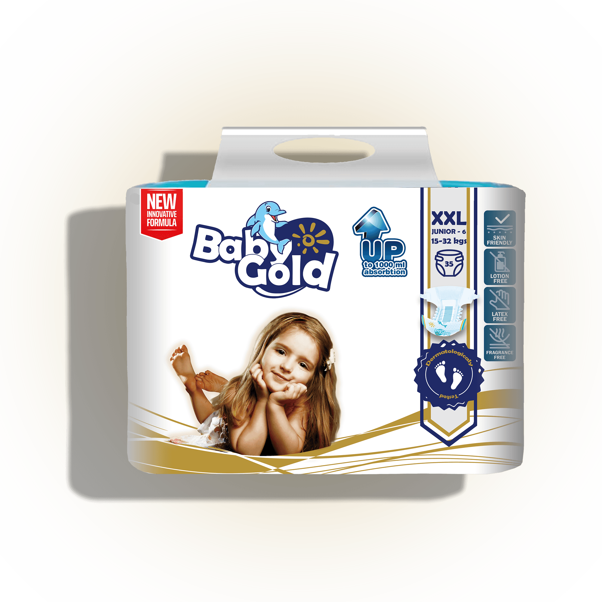 Die Baby Gold Windelhosen wurden für aktive, bewegliche Babys entwickelt, die ihre Welt ständig entdecken. Das hochwertige Design und die praktischen Funktionen bieten zusammen maximalen Komfort und Sicherheit.